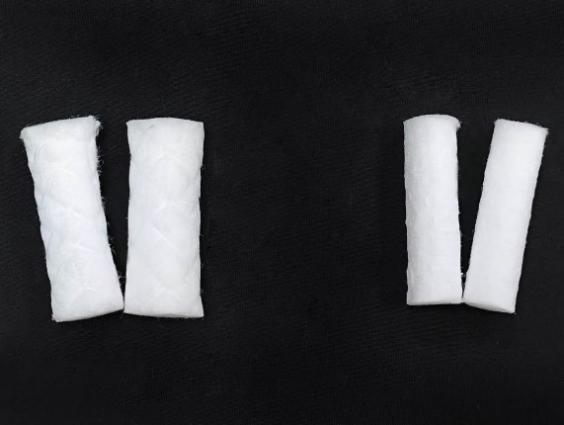 Primeiramente, como podemos ver na imagem acima, o rolo de algodão trançado é macio e delicado, por isso se encaixa melhor na boca, o que pode proporcionar aos pacientes uma experiência mais confortável.