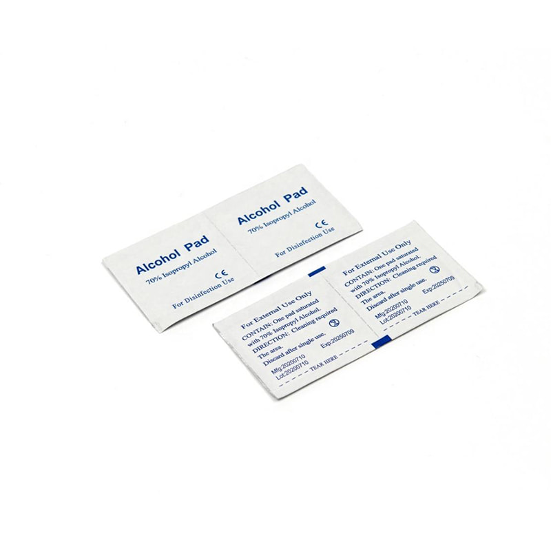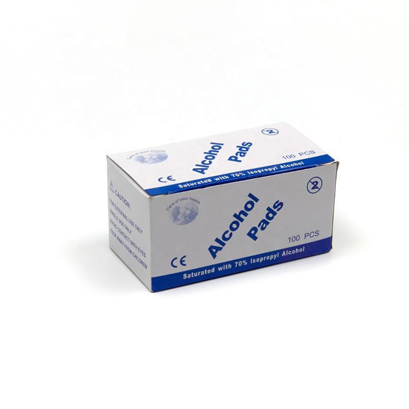 Almofada de preparação de álcool 65X30 mm 2 camadas, tamanho da bolsa 50X50 mm