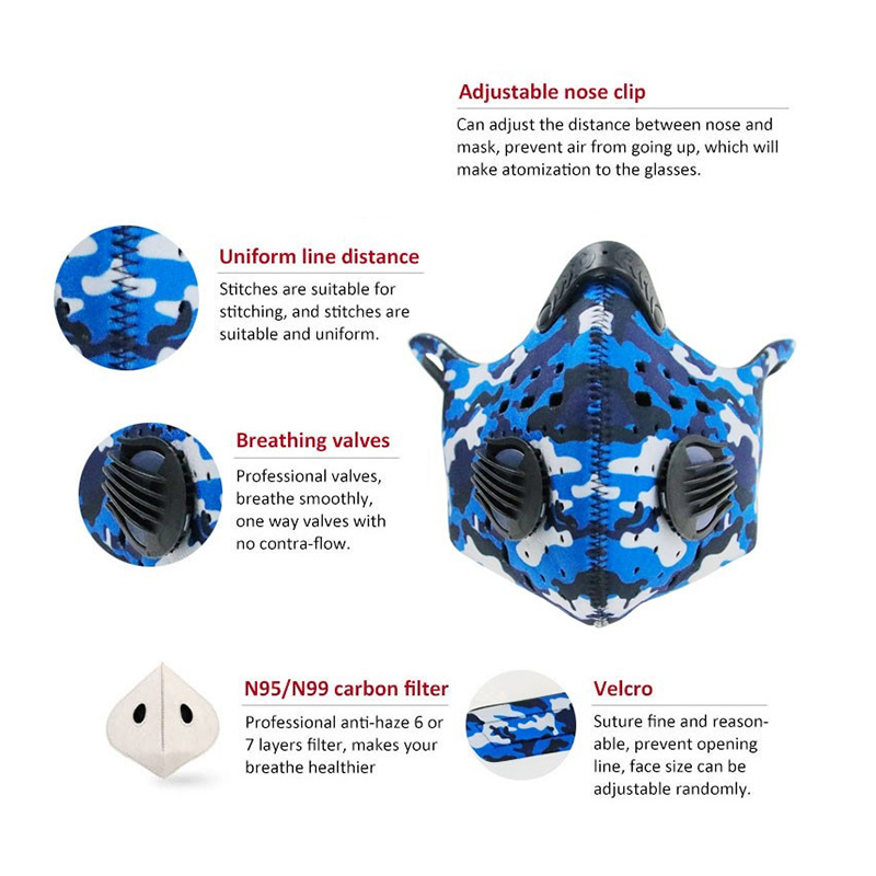 We committed to continuously investing in product development, bring high quality, innovative and effective products to the market and assure you our products are both in quality and reasonable in price. Reliable Máscara respiratória camuflada azul para corrida Suppliers.