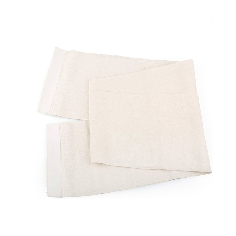 Bandagem elástica de algodão com fecho de velcro em ambas as extremidades, que pode ser esticada facilmente até a compressão desejada e fixada no lugar.