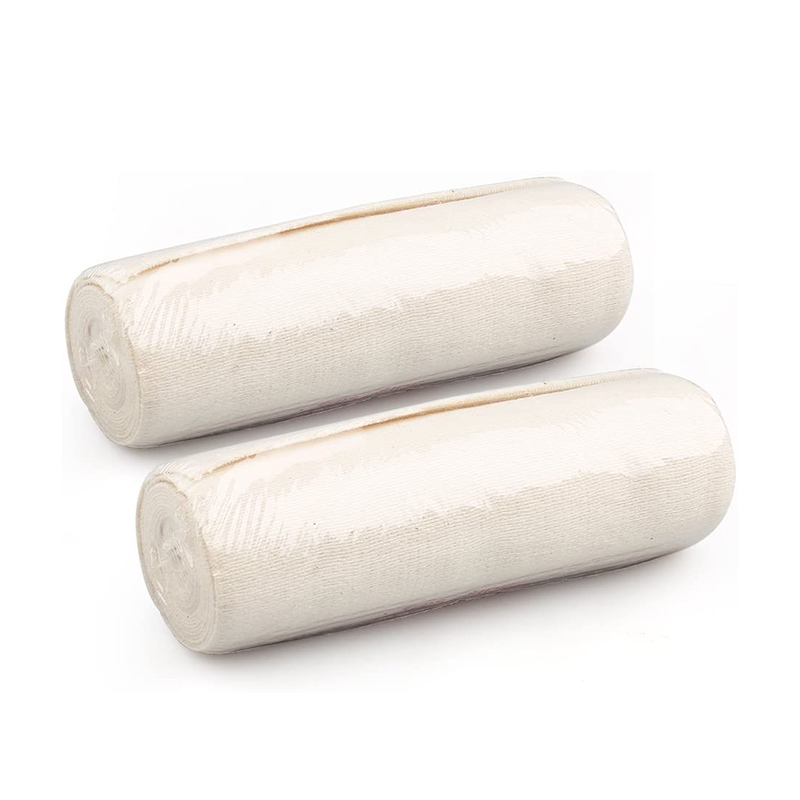 Cada rolo de bandagem é selado em plástico e uma caixa inclui 2 rolos de bandagem elástica.