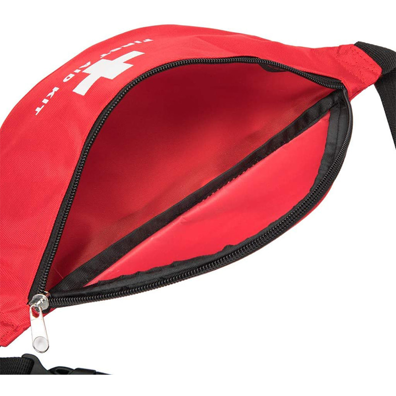 See DetailsEsta é uma pochete ajustável de primeiros socorros vermelha com tamanho principal de 11x5,5x3,5 polegadas/28x14x9 cm, que tem boa qualidade de produto, costuras e costuras duráveis.