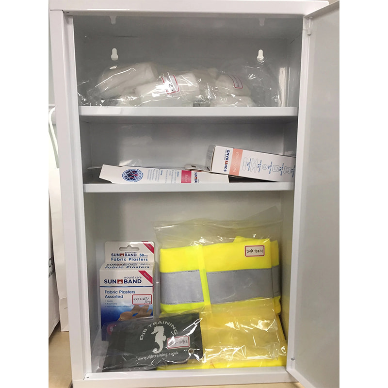 O grande posto de primeiros socorros de 2 prateleiras foi projetado para uso ocupacional em primeiros socorros.