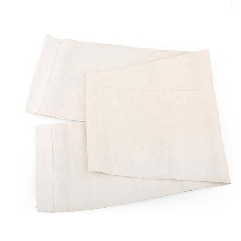 Bandagem elástica de algodão com fecho de velcro em ambas as extremidades, que pode ser esticada facilmente até a compressão desejada e fixada no lugar.