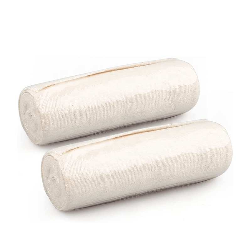 Cada rolo de bandagem é selado em plástico e uma caixa inclui 2 rolos de bandagem elástica.