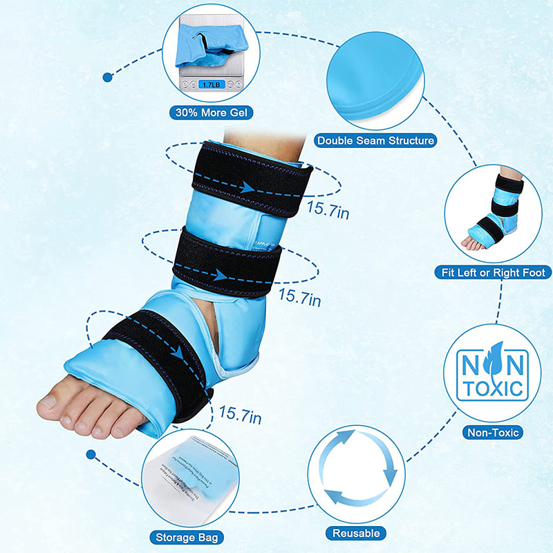 Bolsas de gelo reutilizáveis no tornozelo com design durável de borda de vedação dupla evitam vazamento e quebra de gel.