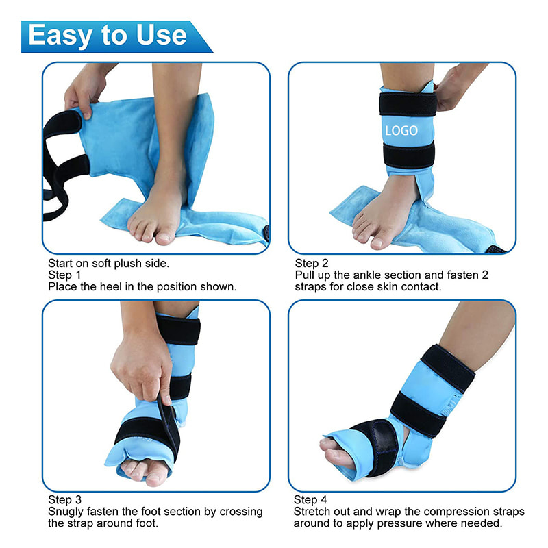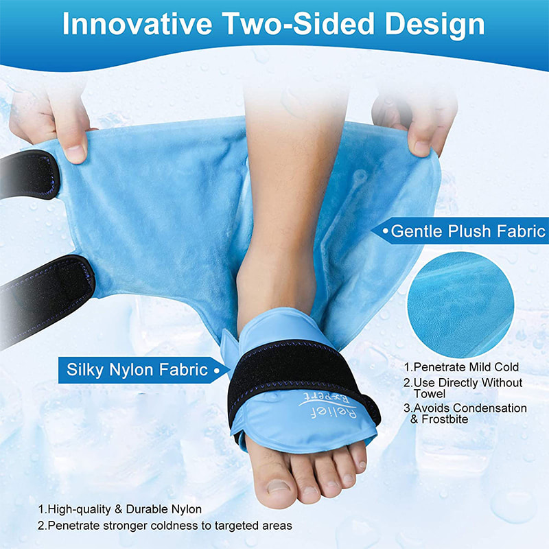 A bolsa de gelo para tornozelo vem com tiras elásticas de neoprene que podem ser facilmente ajustadas para se ajustarem aos tornozelos e fornecem uma poderosa terapia de compressão a frio para obter o efeito calmante na dor no tornozelo, dor no pé e dor no calcanhar.