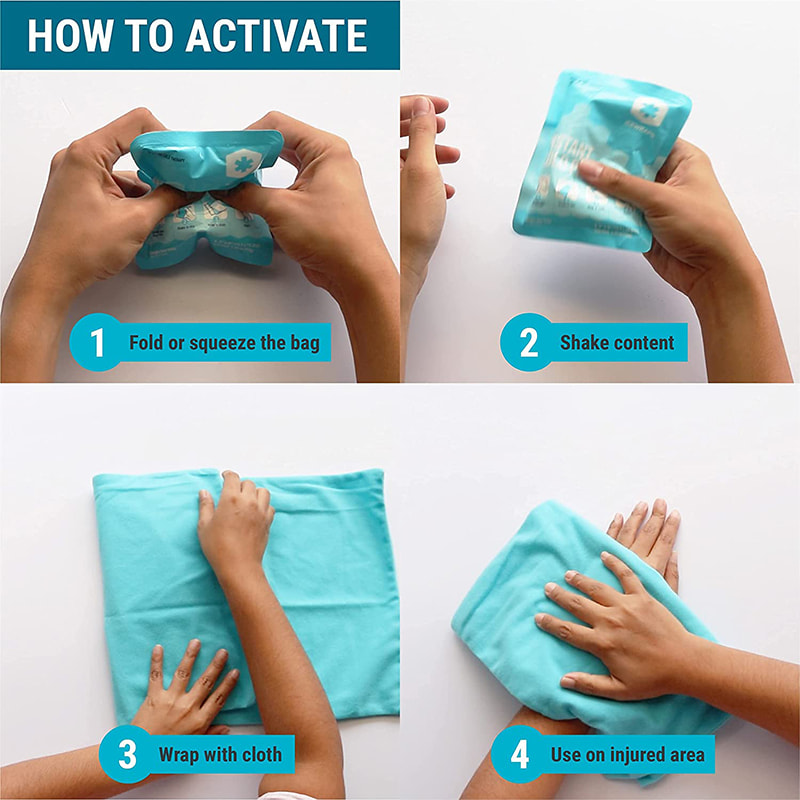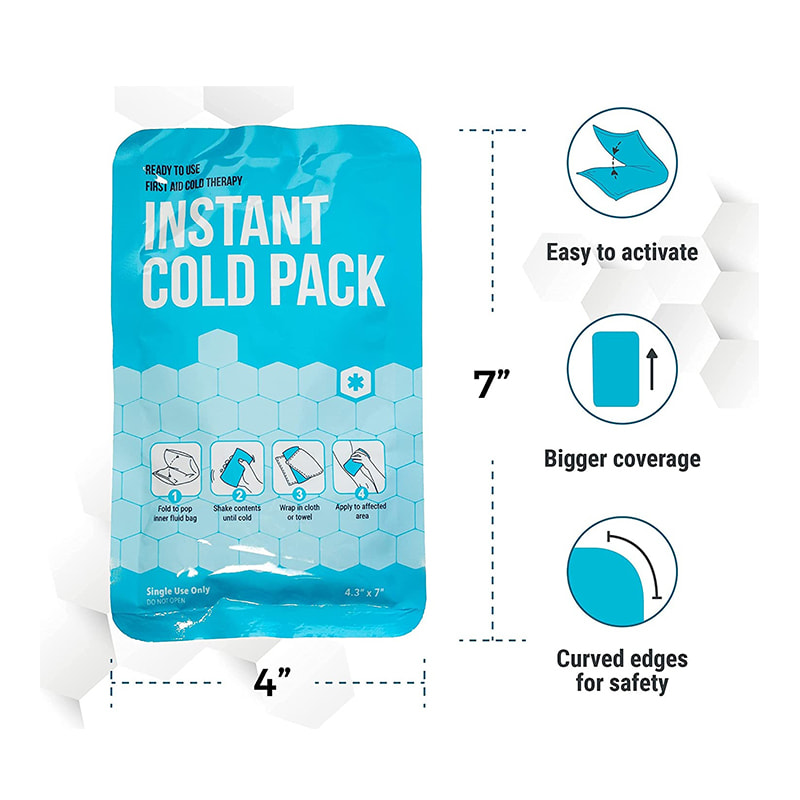 Use a bolsa de gelo instantânea para alívio de primeiros socorros, entorses musculares, espasmos, hematomas, dores nos nervos, picadas, dores de cabeça e febres.