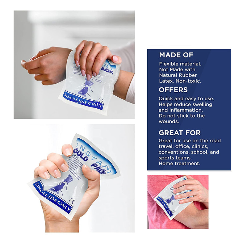 Basta usar a bolsa de gelo instantânea para terapia de frio em todos os seus ferimentos, acidentes, dores ou incômodos.