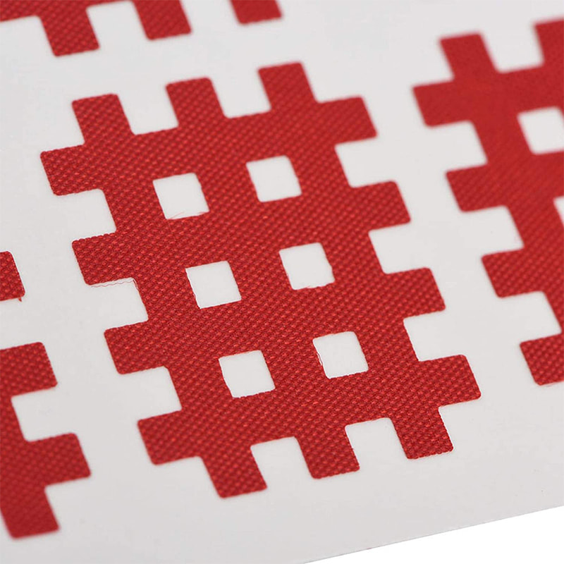A fita cruzada é feita de tecido de seda, revestida com adesivo acrílico médico, por punção e