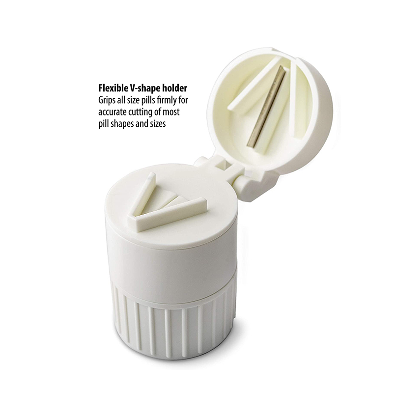 Design em forma de V para o mantenedor na caixa de corte superior, fixe o comprimido e você poderá cortá-lo facilmente fechando a tampa.