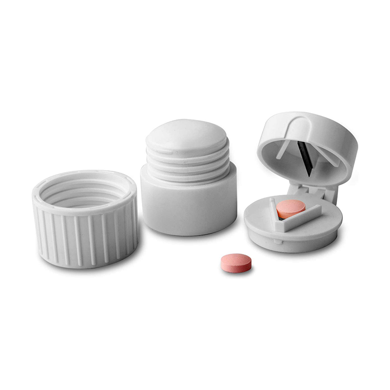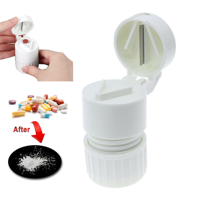 O cortador e triturador de comprimidos é um dispositivo três em um que corta, tritura e salva comprimidos com segurança.