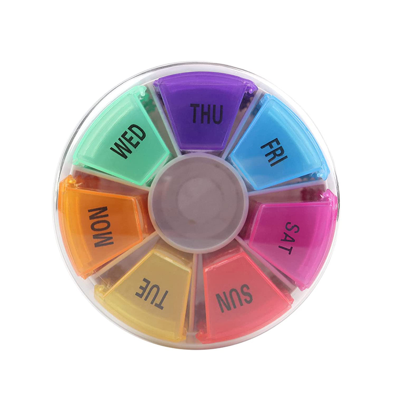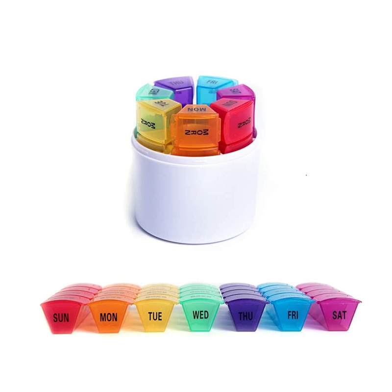 Cada caixa de remédio compacta é impressa com os ícones de data e hora da semana, e cada caixa de comprimidos semanal pode ser facilmente distinguida por 7 cores diferentes.