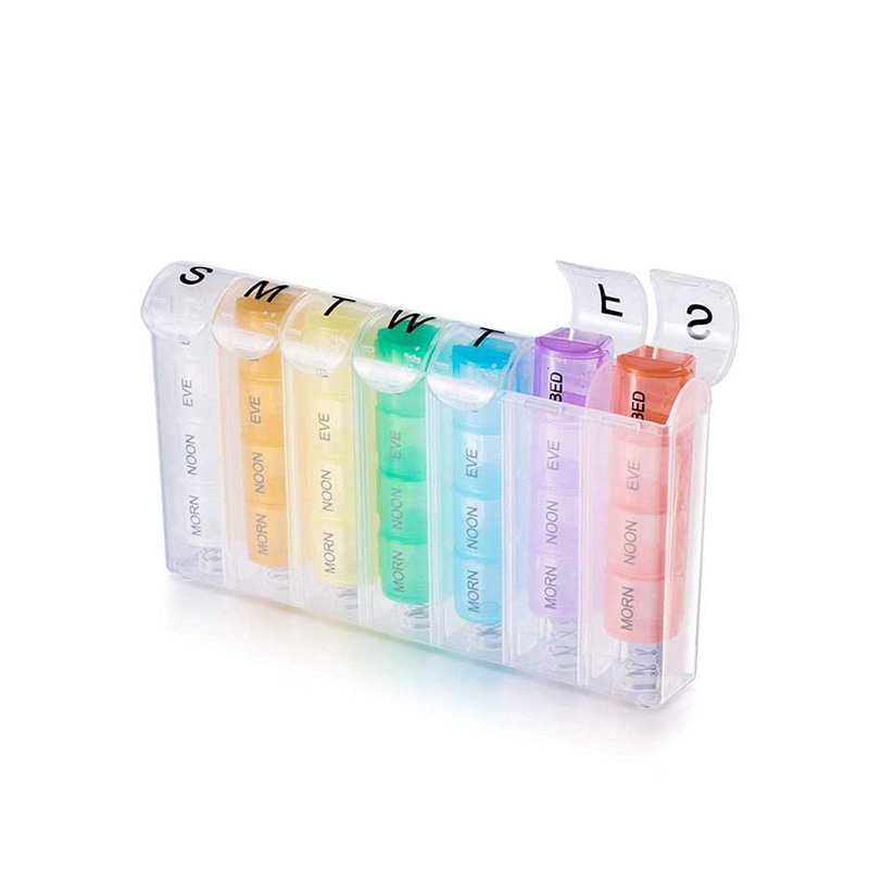 Inclui 7 organizadores individuais de pílulas marcados para cada dia da semana.