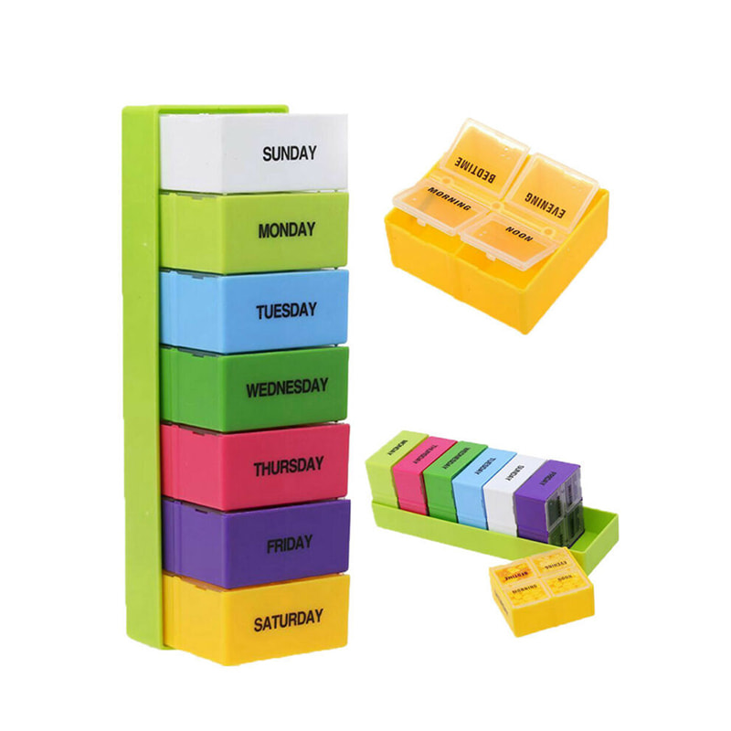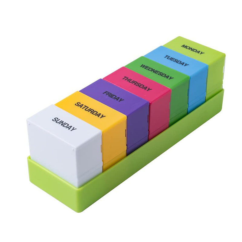 Ele tem cores diferentes, claramente etiquetado com o dia da semana e cada compartimento tem mais de 2,5 cm de profundidade, o que facilita a separação de todos os seus comprimidos por manhã, tarde e noite.