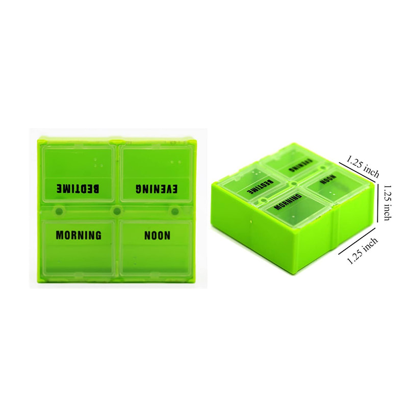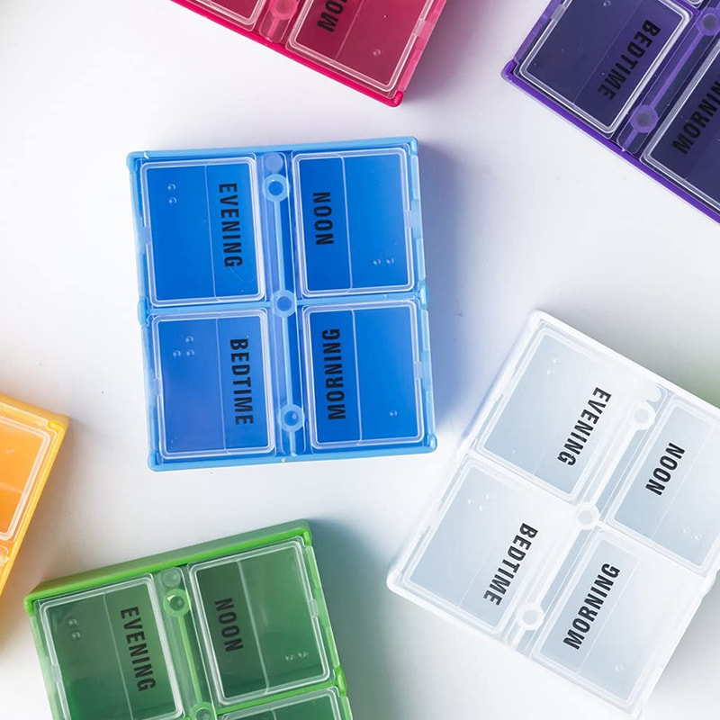 Cada compartimento é separado por quatro tampas fáceis de abrir para que você possa saber quando tomar qual dos seus comprimidos todas as vezes!