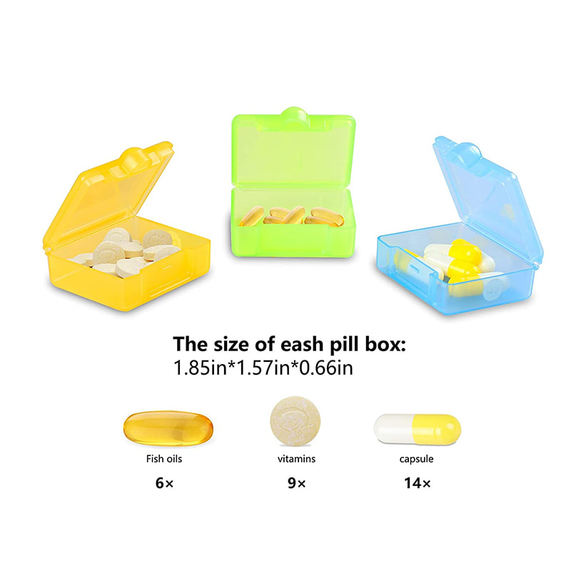 O tamanho do organizador diário de caixas de comprimidos é tão grande quanto uma palma, pode ser colocado em sua bolsa ou bolso facilmente.