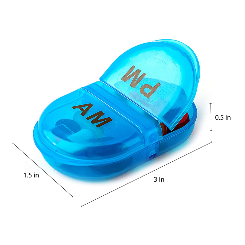 2 compartimentos extra grandes, 1 estojo AM para medicamentos matinais, 1 com PM para medicamentos noturnos ou noturnos. Mais fácil de entender.