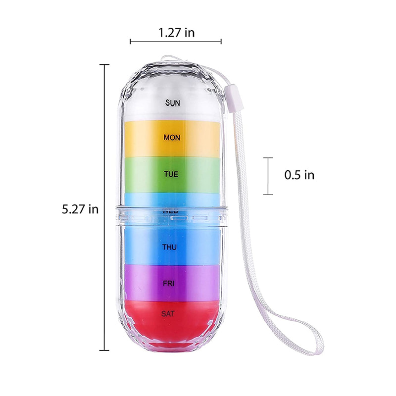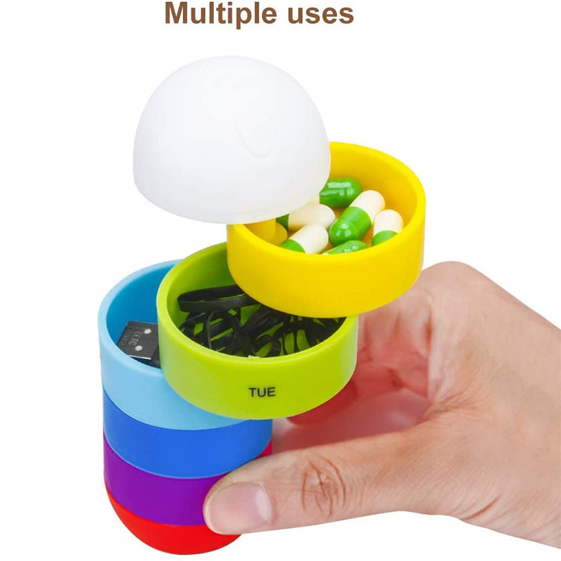 Organizador de vitaminas pequeno, leve e fofo de camada dupla que você pode ter em qualquer lugar. Você não se preocupa quando o organizador de comprimidos de 7 dias abrir e derramar durante o voo.