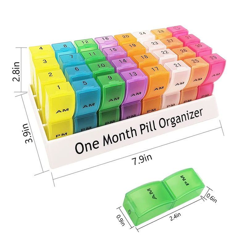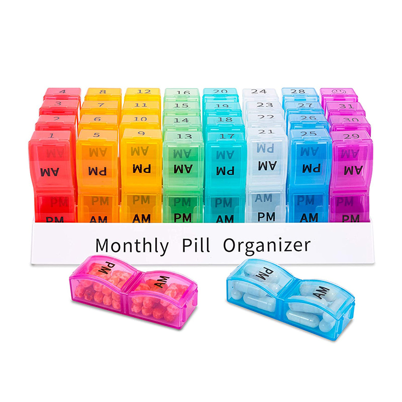 Este organizador de comprimidos 2 vezes ao dia economiza seu tempo e a opção de organizadores mensais de comprimidos para viagens.