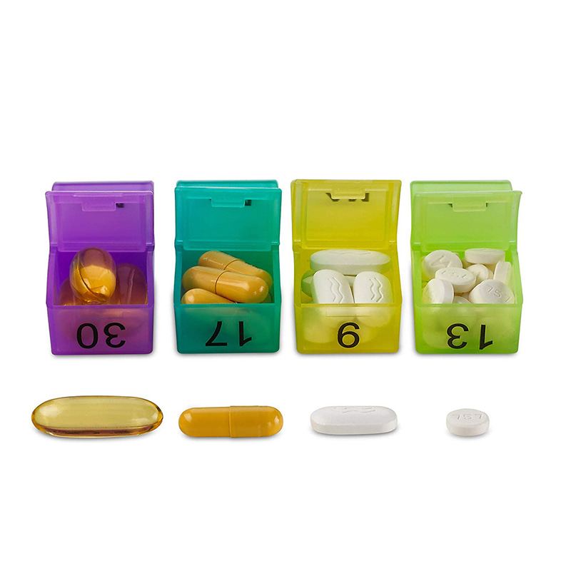 Cada organizador de comprimidos é feito de material PP translúcido de qualidade alimentar, inodoro e livre de BPA.