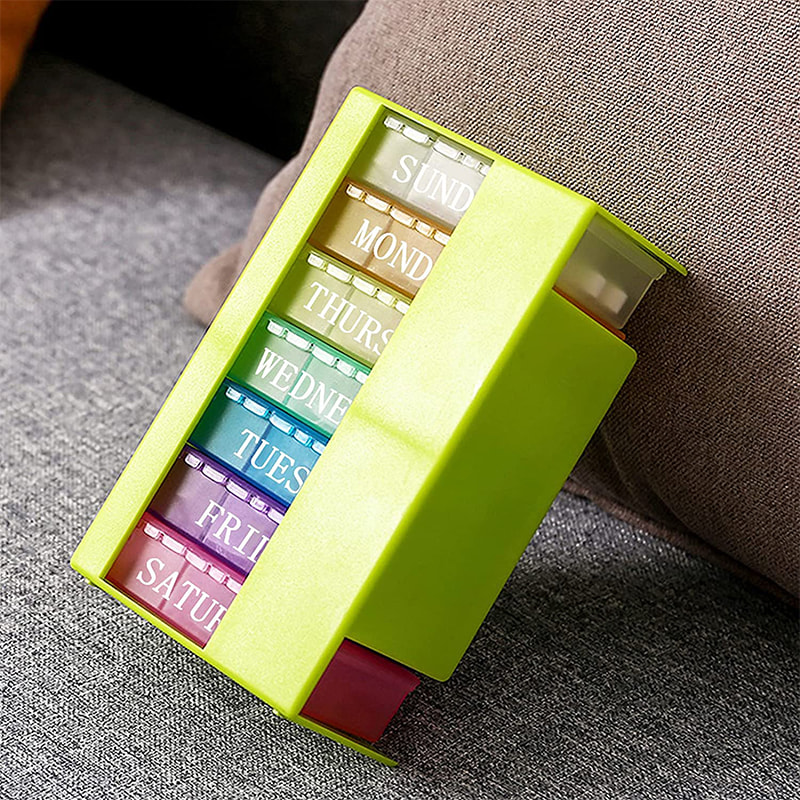 Coloque o estojo de comprimidos diários que você precisa para o dia recente no andar de baixo.